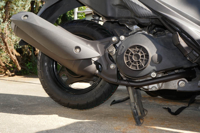 | アドレスV125S リアタイヤ交換・マフラー再塗装 (2022年8月6日) 家内(娘)の方のスクータの後輪タイヤの交換です。 私の前後&このバイクの前輪(合計3本)は2年前に交換しています。→ここ 今回は4本(2台☓2本)のうちの交換していなかった1本を交換します。 |