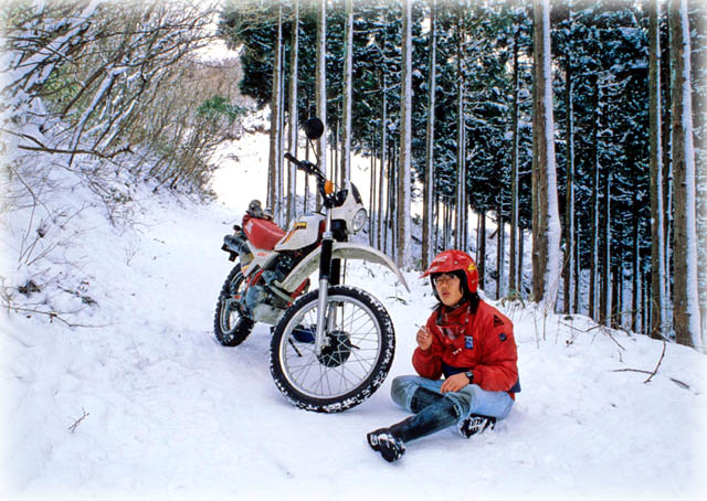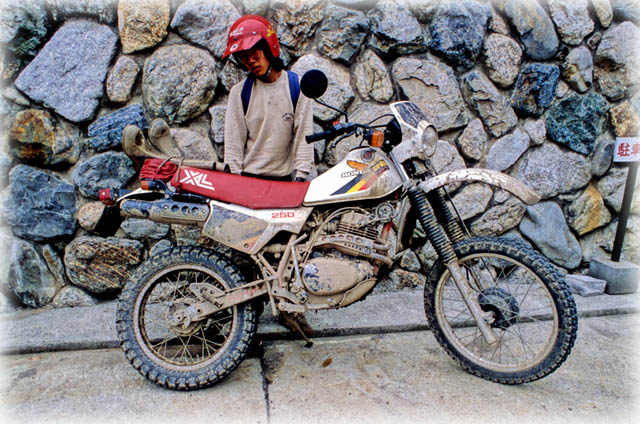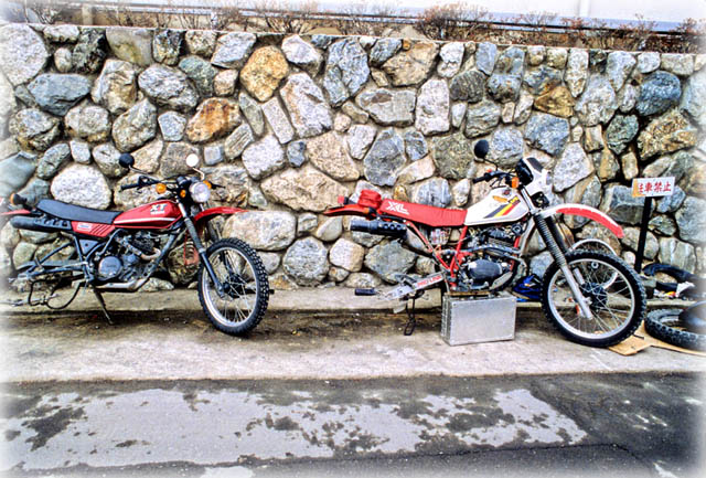 | この頃が一番バイクに乗れていたと思います。 このXLは前後サスがXR用に換装してあって、かなり背が高くなっていますが、 それでも左コーナーでスタンドが接地することがありました。リアをドリフトさせて 舗装路を走っていました。 もちろんいろんな林道を探しながらのツーリングもしていました。 このバイクに乗っている時、限定解除に成功しCB750FBを買ってからは セカンドバイクになってしまいましたが、ツーリングにはXLで行っていました。 いつもキック1発、全然故障しないバイクでした。 |