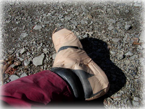 アルパインスターのブーツをコンビニの袋+ガムテープで防水しておく。