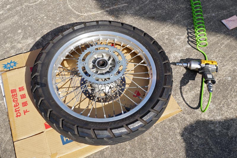 | DR-Z400SのホイールにミシュランT63を装着 (2014年5月18日) この前はヤフオクで仕入れたホイールにブリジストンのBW-201/202を履かせて 通勤快速しています。 今度は元から付いていたホイールに付いている古い(2006年製)のBW-201/202を ミシュランのT63に履き替えさせ、オフロードツーリングに出かけようと思います。 |