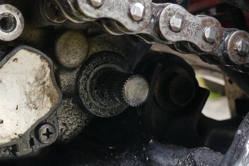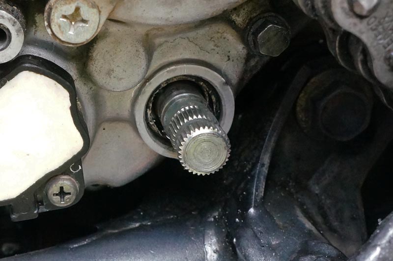オイルシールはチェンジペダルを外し、シャフトにはまっている