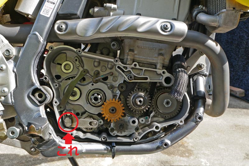 バイク屋さんに相談したところ、ギアシフトシャフトは車体の右側クランクケースカバーを