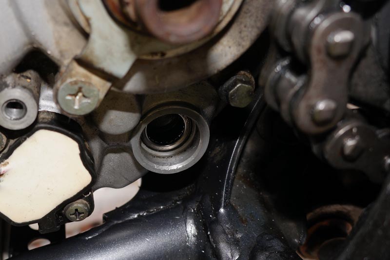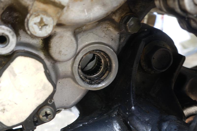 こちら(クランクケース側)もオイルシールのゴムがこびりついていました。