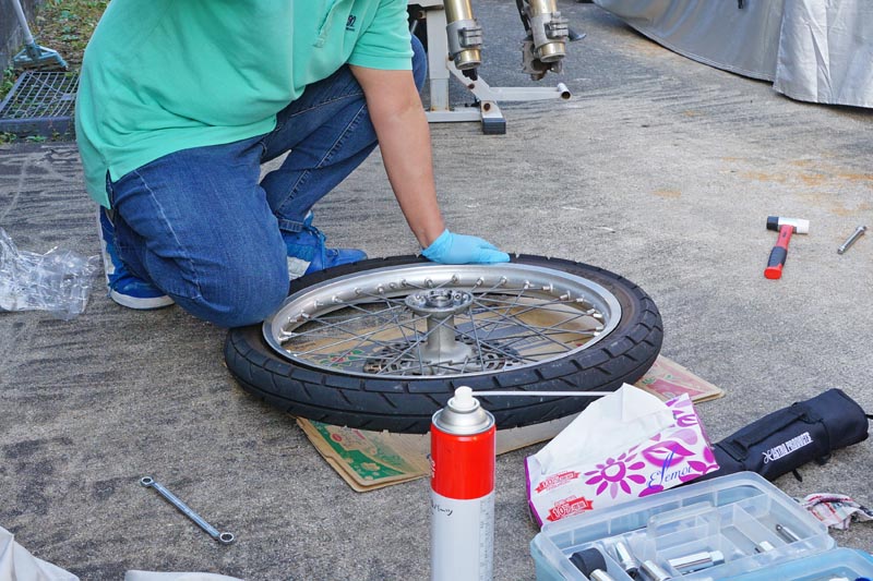 DR-Z400Sのパンク修理 (2022年10月29日)