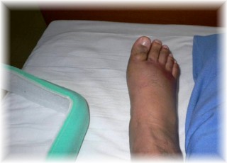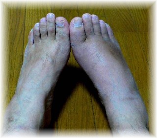 左右の足を比べたところ。まだ右足はぷくぷくですね。