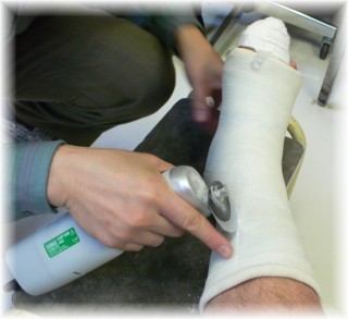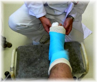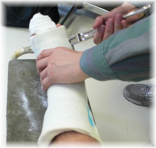 皮膚とギプスの間にクッションを巻いて、