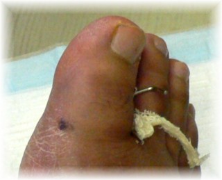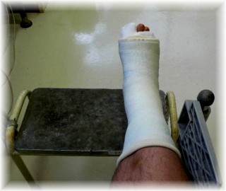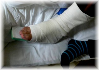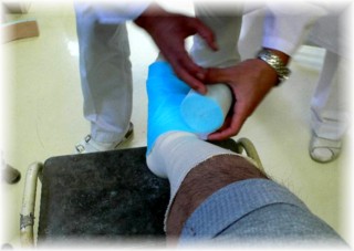 手術の3日後、腫れが収まってきましたのでギプスを巻きます。