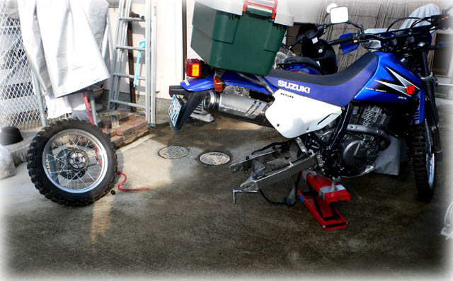 午後2時からタイヤ交換を開始、ついでにチェーンの清掃などをやっていたら