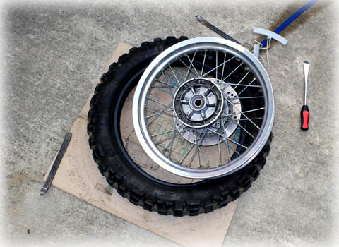 やっぱりフロントタイヤはビードも足で踏むだけで簡単に落ちてくれ、ラクチンです。