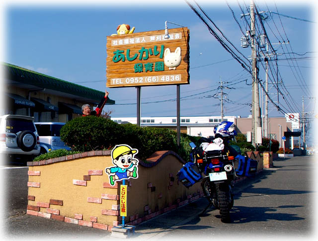 | こっちが芦刈中学校。 文字が金色で見えにくいんだよなぁ。 【芦刈、芦刈町に行く!】 なぜ、芦刈に拘るか? それは私の姓だから。私は兵庫生まれの 兵庫育ち、現在は京都在住ですが、私のルーツは大分県の別府だ そうです。九州の土地勘は全くありません。しかし、一生に一度は 来たかった芦刈町なのです。 小学校に地元少年サッカーチームの父兄がいたので少しお話を 聞いてみました。地名(や施設名)に「芦刈」が付くことは 多いけど「芦刈さん」はあまり居ないそうです。そりゃ、そうか。 京都市に「京都さん」、宇治市に「宇治さん」という姓の人がそんなに たくさん居るわけじゃないもんね。 さてもう昼の2時半。夜には帰りのフェリーに乗らなければなりません。 芦刈町から佐賀市に行き、佐賀大和ICから一気に新門司ICまで 走りました。120kmほど。 【Appendix】 名字由来netによると、芦刈という姓は、 『現大分県中南部である豊後国大野郡芦刈村が起源(ルーツ)である』と。 ああ、やっぱり大分県なんですね。 ここもまた行かないとなぁ、、、 走り出してすぐ、タイヤの空気圧を下げていることに気付きました。 まさかバーストすることはないと思うけど、念のためSAでガソリンを 給油するついでに空気を入れてもらうことにしました(自分でも 空気ポンプは持っていますが、しんどいのでGSのコンプレッサで やってもらうことにしました)。 前輪はエアバルブの位置が丁度良くて問題なかったのですが、後輪は エアバルブが真上にあって、はめにくいのでした。GSのお兄さんが 少し後輪を回して、と言うのでサイドスタンド側にバイクを 倒して、後輪を浮かせようとしたところ、、、 倒す角度がきつ過ぎてバイクが自分の側に倒れ込んできてしまいました。 わちゃ~、バイクがゴロンとひっくり返ってしまいました。 荷物を満載しているのでいったん倒れ込んでくると支えきれなかった のです。 幸い、サイドバッグが大きく張り出しているおかげで、バンパー代わり になり、バイクは無傷、ちょっとバックミラーの向きが変わってしまった ぐらい。でもガソリン満タンにしたとこだったので、かなりたくさん ガソリンがこぼれました。あ~、失敗。 気を取り直して、新門司着。時刻は夕方4時半。フェリーは出航は夜8時ですが 出航の1時間前までに乗船手続きをする必要があります。それにしても時間は まだたくさんあるので、フェリー乗り場の場所を確認後、ちょっと早めの 晩ご飯を食べようと店を探します。しかしフェリー乗り場の付近は 道路は広いですが何もなく、10km以上走ってやっと食べ物屋が集まって いる界隈を発見。一見、牛丼屋に見える、天麩羅屋で食べることにしました。 |