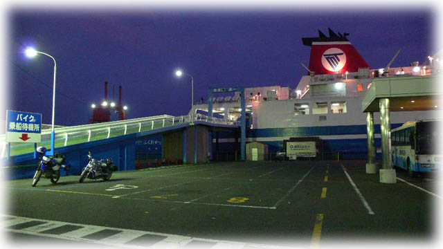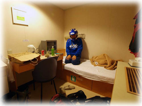 | 6時半になりようやく乗船。私は1等室の一人部屋です。 2日連続でテント泊だったので奮発しました。 オドメータ 20478km 本日の走行 360km オドメータの写真を撮り忘れました 5日め (11月7日 日曜日) |