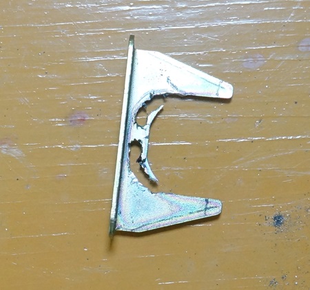 | ウィンカーボディとステーを止めてある金具(ラッチ)です。 基板はウィンカーボディとウィンカーレンズの間に挟み込むように 取り付けるので、基板の厚み分、なるべく深く差し込むために加工しました。 |