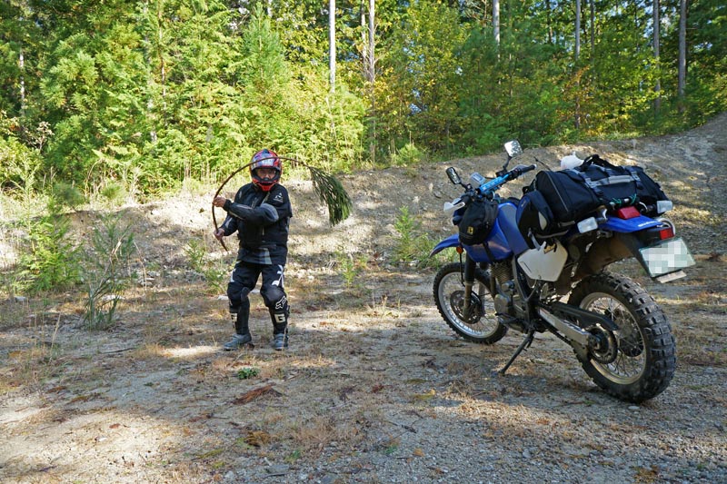 | 諏訪ICから南下。 町道長嶺線(オフロード)に入る。 ここは台風の大雨で、まだ水が引いておらず、苦戦。 上の写真のぬかるみはまだまだ序の口で、ヘトヘトになりました。 |
