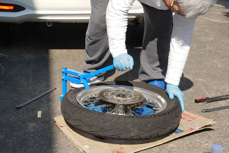 | やはり長いタイヤレバーはラクチンです。 |