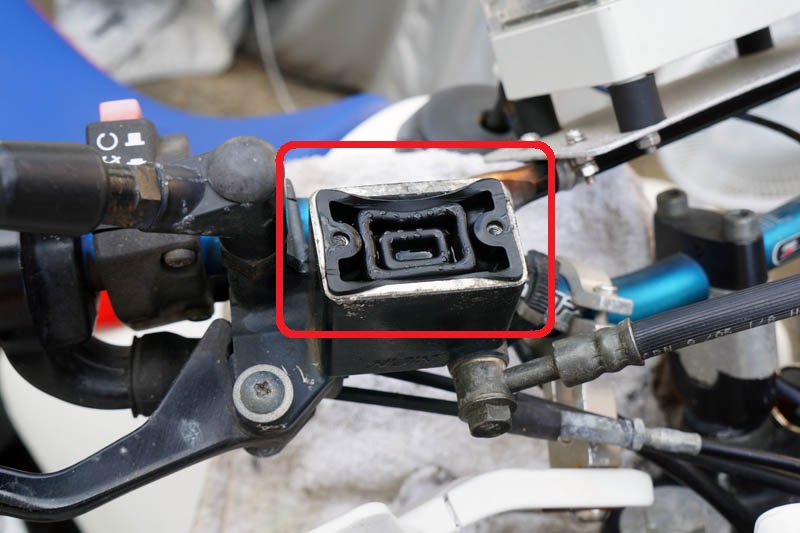 | マスターシリンダのダイヤフラムが変形しています。 長年使ってきたので、ブレーキフルードが浸潤して、劣化したのですね。 これではフタをした時に密閉できません。 2年前のブレーキフルード交換時はここまでは酷くなかったのですが、 次回は交換しようと決意して新品部品をずいぶん前から用意してありました。 |