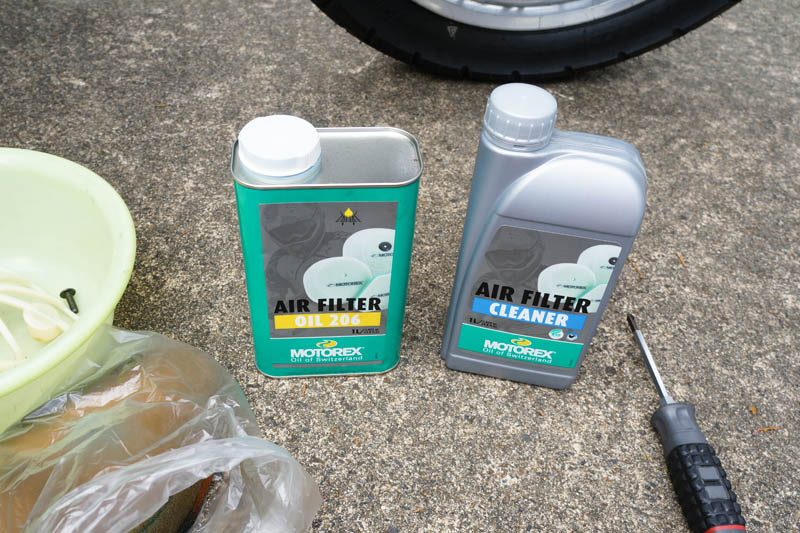 | じゃじゃ〜ん。 MOTOREXのエアクリーナ専用のオイルとクリーナ液です。 |