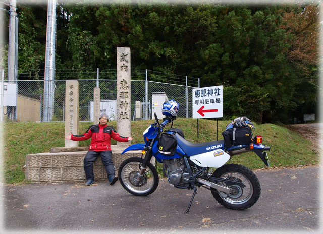 恵那神社着。 林道はどこ?