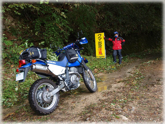 クマとの遭遇を避けるため、バイクから降りる時はバルル〜ンバルンと空ぶかし、