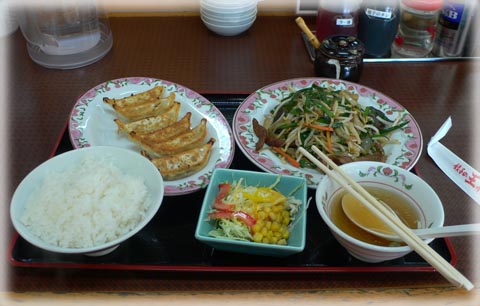 国道19号線で「王将」を発見。 ニラレバ+ギョウザ を食べました。