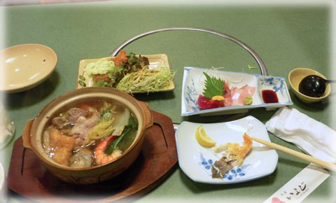 ちゃんこ鍋に刺身、etc。