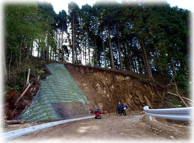 | 上の場所を徒歩で渡ったところ。 DR650では行けません。 引き返して「湯の原温泉」を通って国道312号線を南下、 和田山から北近畿豊岡自動車道に乗って帰宅しました。 |