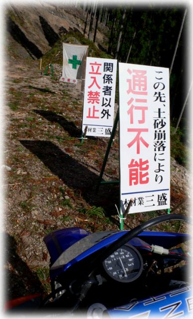 | 民宿から南の方へ行った、名色羽尻林道。 分岐して金山峠の方に行こうと思ったのですが、これは強烈。 |