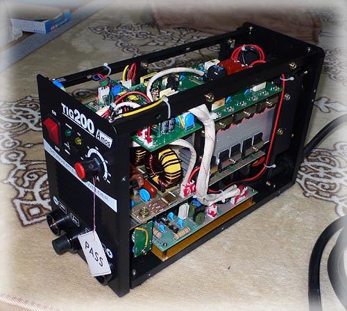| 中華製のTIG熔接機を買いました。 (2011年3月14日) TIGというのは タングステン・イナート・ガスの略です。 タングステンはアーク(火花)を飛ばす電極の材質のことです。 融点は3500℃ぐらい、鉄は1500℃ぐらいです。 ムカシながらの熔接(被覆アーク熔接)は電極そのものが アークの熱で熔けていきますが、TIG熔接は電極のタングステン は熔けません(少しは熔けてチビていきますが)。ただアークを 発生させて母材を暖めて熔かすだけです。 ですので直流TIGの場合、電極をマイナス、母材をプラスにします。 母材がプラスの方が、電子が母材に集まるので、母材をより熱く することができるからです。被覆アーク熔接は極性が逆でアーク棒 が熱くなって熔けるようになっています。 このTIG熔接機は接続ケーブルを繋ぎ変えることで被覆アーク 熔接もできるようになっています。 イナートガスというのは不活性のガスのことです。日本では 経済性からアルゴンガスを使います。アメリカなどでは ヘリウムガスを使うそうです。 なぜ不活性ガスを使うかというと、母材が真っ赤に熔けて ドロドロになっている部分の酸化や窒化を防ぐためです。 アークを包み込むように不活性ガスを一定量吹きつけ、空気を 遮断します(シールドガスと言います)。 熔接は今までに一度もやったことがないのですが、アークで 母材を暖め(熔かして)、そこに熔加棒を熔け込ませるやり方は 半田付けに似ているような気がしてこの熔接方法にチャレンジ してみることにしました。 |