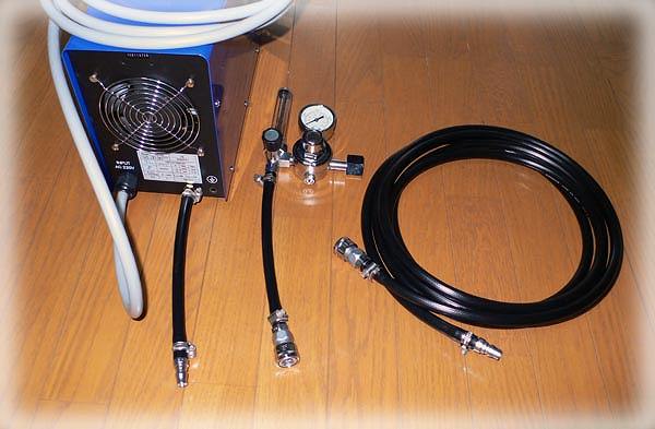 | アルゴンガスの配管はこんな感じにしました。 ワンタッチカプラで簡単に取り外しができるようにしました。 |