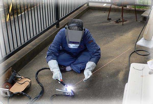 | 自動遮光のお面(アーク光を検知して自動的に暗くなります)も快適に働きます。 TIG熔接はほとんどスパッタ(金属の飛び散り)がなく、ヒューム(煙)も出ません。 ガスの出るシューっという音と、かすかにチリチリとアークの飛ぶ音がするだけで 上品(?)です。 *もうちょっとトーチは立てた方がいいですね。 続きはこちら↓ |