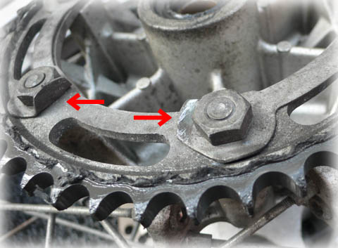 新しいスプロケ・緩み止めプレートを取り付けたところ。