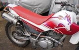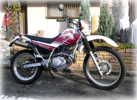 | XT225(セロー)のページ 形式は4JG6、'98年式です。 家内のバイクです。XLR125Rだと高速道路を走れないのと、やはりスピードが あまり出ないのでDR650といっしょに走るのはツライ、ということで中古で買いました。 (2007年12月16日) |