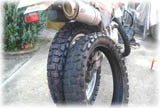 | 通称「おんぶセロー」と言うそうです。 タンクのグラフィックのセロー(かもしか)に人間がおぶさるように見えるから? またはエンジンに、セロー(かもしか)がおぶさっているように見えるから? 後ろのタイヤはチューブレスになっています。 |