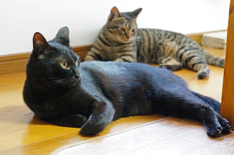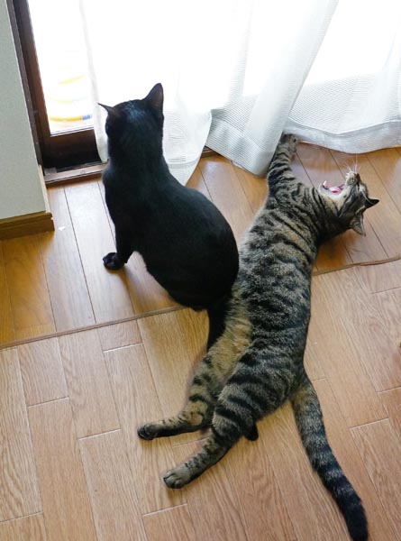 まったりと2匹でお外を見るのにゃ