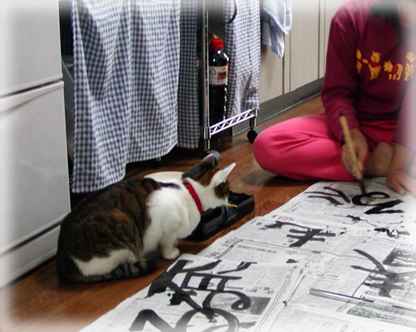 娘が書き初めの練習中。