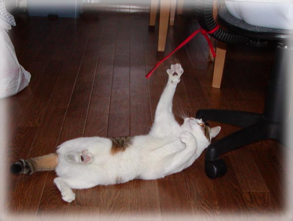 しがみつくのにゃ。