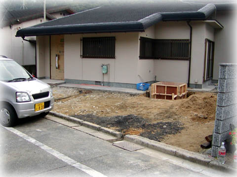 | でも、「それでは殺風景やで」という意見に耳を傾け、コンクリート打設は 駐車部分(上の写真で向かって右側半分)だけにして、左半分のスペースを 自分でボチボチDIYで庭作りすることにしたのです。 続きはこちらからどうぞ↓ |