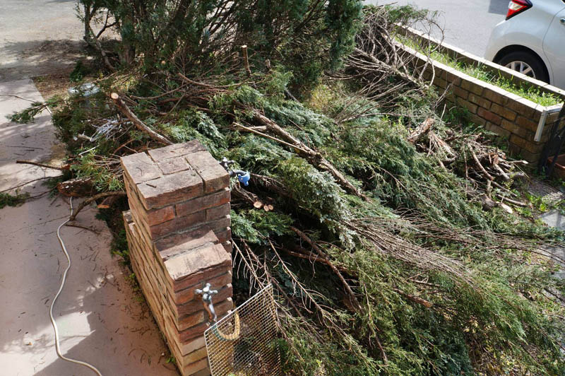あんまり密集していると風通しが悪くて葉が蒸れるのと、台風でまた倒れるといけないので
