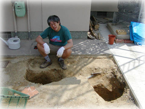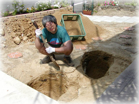 石がゴロゴロしていますし、粘土質なので、もう10cm余分に(60cm)