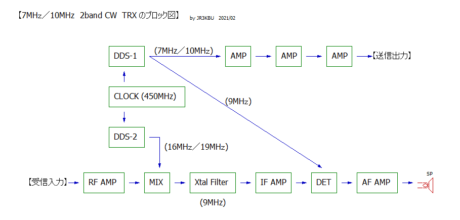送信部は周波数混合はしないでDDSの出力を直接増幅します。