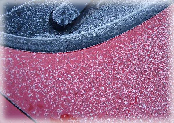 朝、6時半頃、外に出てクルマを見ると霜が結晶になっていました。