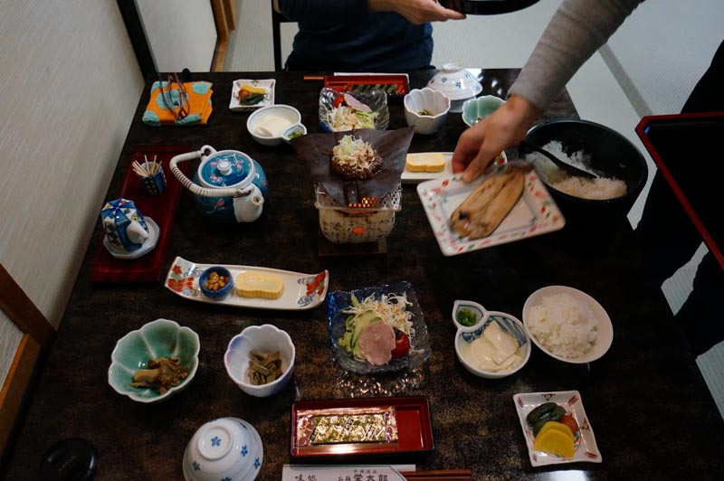 翌日も5時前に起床。朝風呂などに浸かり、7時朝食、8時前に宿を出立。